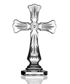 Handcrafted in clear crystal, glass craftsmen illuminate this cross through a beautiful work of size. Each part of the cross is finely carved in the mass.